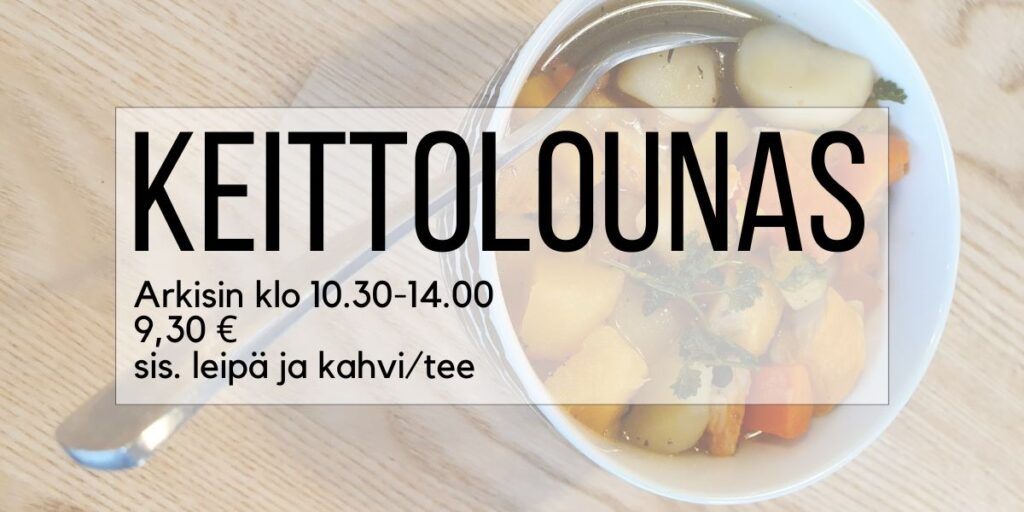 Kaffila tarjoilee maukkaan keittolounaan arkisin klo 10.30 – 14.00. Keittolounaan… Jatka lukemista Keittolounaslista 26.-30.1. - Joulun ja vuoden vaihteen aukioloajat
